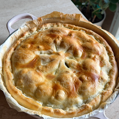 Distribuite il primo su una teglia ben unta, aggiungete il ripieno e coprite con il restante impasto. Sigillate bene i bordi e bucherellate leggermente la superficie, per far uscire il vapore durante la cottura.